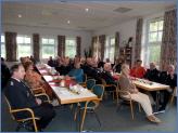 Zu Nachwuchsplanung, Situation der Feuerwehren und Mitgliederwerbung hatten sie alle allein schon aus ihrer Erfahrung viel beizutragen. Zur Einrichtung einer Kinderfeuerwehr hatten sie sehr differenzierte Meinungen. Das wurde einerseits positiv gesehen, andererseits aber auch sehr kritisch betrachtet. Ob das denn ab sechs Jahre so sinnvoll ist, erschien vielen doch sehr zweifelhaft. Da gäbe es gerade wegen der noch fehlenden Selbstständigkeit viele Bedenken.