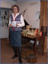 Sigrid Nolte Schefold aus Osterhever, zuständig für diese Veranstaltungsreihe, hatte eingangs im Rahmen der Begrüßung darauf hingewiesen, dass der dänische König vor 290 Jahren die Landhökerei gestattet hatte. Damit erst bekamen die Lebensmittelwaren einen Geldwert. Aber Tauschhandel war auch noch üblich. Wer wissen möchte, wie so ein Landladen eingerichtet war, kann das im Museum Haus Peters in Tetenbüll sehen: Regale, Schubladenwand und Tresen mit Schlitz für die Münzen, dazu viele Handelsartikel wie Imi, Sunlicht oder Dalli, Hoffmann’s Creme-Stärke, Linde’s, Boysen-Kaffee und Liebig’s Fleischbrüh-Würfel, dazu Senf-Behälter, Essig-Fässer, Glasballons und Gläser mit Bonbons. Diese standen als Leihgabe zur Anschauung auf einem Tisch bereit.