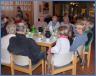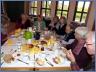Den Anstoß dazu erhielt Diakonin Andrea Streubier von ihren Eltern Christa und Kurt Streubier, die seit zwei Jahren in St. Peter-Ording wohnen. Für das Vorbereitungsteam konnte sie außer ihnen Anke Willecke gewinnen, die in Ording aufgewachsen ist. Die Frühstücksrunde ist inzwischen von zuerst 26 auf bis zu 40 Teilnehmern angewachsen und hat sich etabliert. In vier Tischgruppen wird gemeinsam gefrühstückt. Es gibt Gewohntes, aber zusätzlich, was man selber besonders als alleinstehend so nicht auf dem Tisch hat, wie z.B. mal verschiedene Sorten Fisch oder auch Käse, und das alles auch noch schön angerichtet. Dafür ist ein kleiner Kostenbeitrag zu entrichten. Klöhnschnack gibt es umsonst. Gertrud Jöns, 1951 aus Büsum nach St. Peter Ording gekommen, erläuterte, warum sie wie ihre Tischnachbarn dieses Angebot im Gemeindehaus einfach gut finden: „Es macht uns Freude, gemeinsam am Tisch zu sitzen und zu frühstücken. Es gibt immer etwas zu erzählen, und außerdem haben wir ein Thema. Jeder kann dazu etwas sagen und seine Gedanken einbringen.“ Tische und Stühle mussten noch dazu gestellt werden, damit die dieses Mal 50 Gäste alle Platz finden konnten. Manche waren bisher noch nie dabei gewesen, die meisten aber kannten sich schon und hatten sich auf dieses Zusammensein besonders gefreut wie Margarete Hedtke: „Das tut gut, wir sitzen zusammen und man lernt sich kennen.“