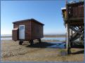 Das Karkenschipp der Urlauberseelsorge, der EiSPoint, die Bootsschuppen der TZ, Badeaufsichtskabinen sind bereits im Winterquartier. Bei der Seekiste in Böhl stand der Imbiss abholbereit auf seinem Winterwagen. Vor einem Strandkorbpodest in Böhl befanden sich auf dem Sand zwei Bootsschuppenteile. Sie sollen noch nach Hungerhamm. Die meisten Podeste sind bereits winterfertig gemacht. Die Bohlen zwischen den Trägerelementen sind herausgenommen, damit Wellen und Eis keinen großen Schaden anrichten können.