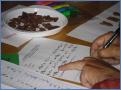 Wie es einem Analphabeten ergeht, erlebten die Besucher in der an sie gestellten Aufgabe, den folgenden mit 52 Hieroglyphen statt Buchstaben geschriebenen Text zu entschlüsseln: „Sei gegrüßt Fremder, wenn du dieses entziffert hast, weißt du, wie schwer einem das Lesen fallen kann.“ Nur die Hieroglyphen für die Anlaute eines jeden Wortes konnte man einer Tabelle entnehmen, z.B. das „F“ in „Fremder“. Die Zeiten für die Entzifferung lagen zwischen sechs bis zehn Minuten. Als Anregung gab es außerdem „Russisch Brot“ und „Buchstabensuppe“. So kam man miteinander beim Essen ins Gespräch.