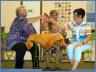 Schon in diesem ersten Akt sind es die Dialoge, die Mimik und die Situationskomik, die beim Publikum zu Szenenapplaus und immer wieder Lachern führten. Das steigert sich noch im zweiten Akt, in dem Jan Tedsen als „Testkunde“ sein schauspielerisches Talent voll entfaltet, Hans Thomas Thomsen in gewohnter Form agiert und Gudrun Martin, Kirsten Anton und Antje Jensen im Kimono und entsprechend gestylt auftreten: „Wi wüllt uns bemööhn, de Lüüd op asiatische Oort sachs un sinnig veel Ruh to vermitteln.“- Stattdessen aber werden sie vor allem im dritten Akt selbst immer unruhiger. Die Verwicklungen nehmen zu, denn die durch Jördis Prieg gut dargestellte gewiefte Vertreterin sieht vor allem ihren Nutzen. Und die Männer spielen auf ihre Art auch noch mit.