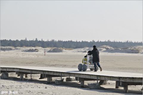 Der besondere Rollstuhl, der sich durch extrem dicke Reifen und ein leichtes wendiges Gestell auszeichnet, ist der vierte seiner Art, den die Tourismus-Zentrale ihren mobilitätseingeschränkten Gästen zur Verfügung stellt. Darüberhinaus gibt es immer ab April mindestens einen zusätzlichen