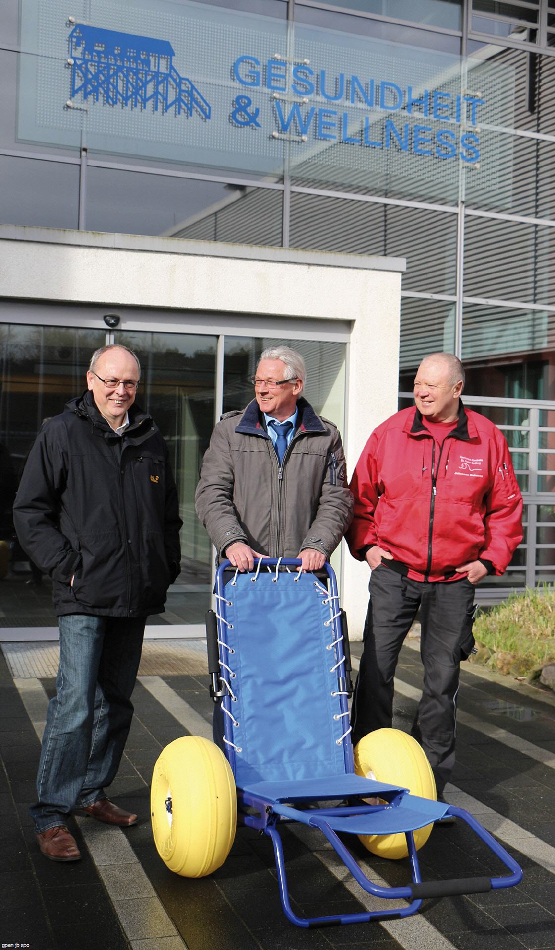 Strahlende Gesichter vor dem Gesundheits-und Wellnesszentrum: Ein vierter strand- und sandtauglicher Rollstuhl ist nun im festen Bestand der Tourismus-Zentrale. Ermöglicht hat das die BG Nordsee Reha-Klinik. Mit der Spende des Strandrollis unterstützt sie den Service der Tourismus-Zentrale und ermöglicht querschnittsgelähmten und rollstuhlpflichtigen Patienten die Möglichkeit, in St. Peter-Ording den einmaligen Strand zu erleben. Als Einrichtung des Berufsgenossenschaftlichen Unfallkrankenhauses Hamburg sieht die BG Nordsee Reha-Klinik ihre Verpflichtung, neben Akutversorgung und Rehabilitation, ebenfalls im Berufsgenossenschaftlichen Auftrag. „Es ist uns eine Herzensangelegenheit, Menschen, die auf einen Rollstuhl angewiesen sind, Strandausflüge zu ermöglichen“, so Uwe Lindner, Kaufm. Leiter und Prokurist der BG Nordsee Reha- Klinik.