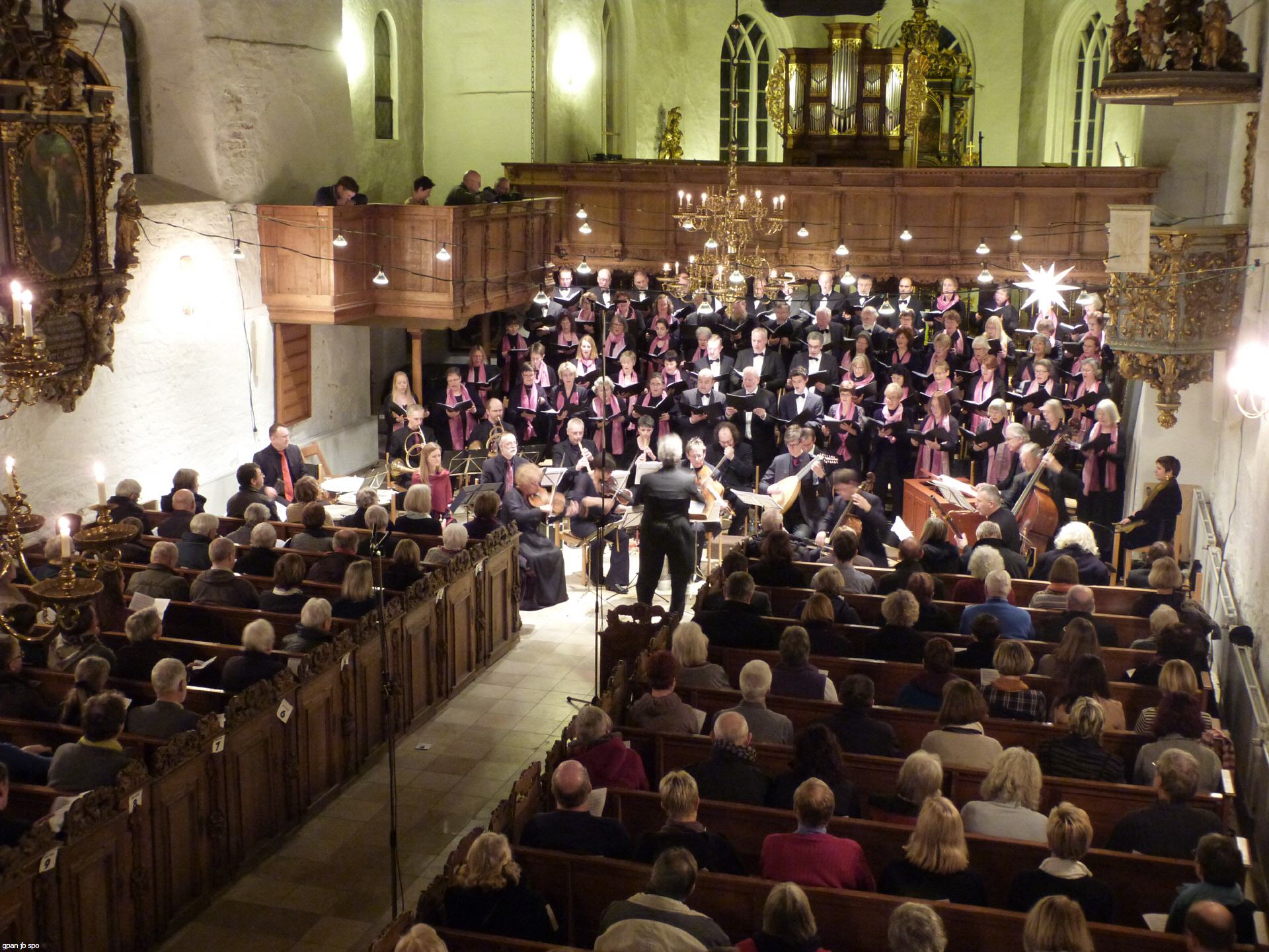 Durch einen glücklichen Zufall kam es in der ausverkauften Kirche St. Laurentius in Tönning am letzten Sonntag nach Epiphanias beim Abschluss des Weihnachtsfestkreises zu einem Konzertereignis der besonderen Art: Kantor Christian Hoffmann hatte 2011 eine CD mit Kantaten von Christoph Graupner (1683-1760) erhalten und war von dessen Musik sofort begeistert. Mit dem Propsteikantatenchor, den Solisten Monika Mauch (Sopran), Georg Poplutz (Tenor), Dominik Wörner (Bass) und der Capella Laurentii mit 16 Musikern wurden jetzt unter seiner Leitung sieben Kantaten, durch den Titel „Ein Weihnachtsoratorium“ zusammengefasst, aufgeführt. Musiziert wurde auf Barockinstrumenten, darunter Laute und Parforcehörner, Trompeten sowie vier Pauken. Echopreisträgerin Ulla Bundies auf ihrer Barockgeige war die Konzertmeisterin.