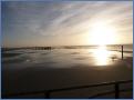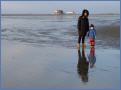 Gäbe es wie im Bad nur die Seebrücke zum Strand, sie wäre voller gewesen als dort. Aber in Ording verteilten sich alle auf die Stege und auf den weiten Strand oder gingen am Spülsaum spazieren. Kinder balanzierten auf den Balken bei den Fahrradparkplatzständern oder nutzten den Dünenabhang der Mitteldüne auf der Sandbank, um herunter zu kullern. Es war einfach ein Spaß. Und es gab herrliche Motive mit Licht- und Spiegeleffekten.