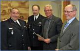 Mit dem Brandschutzehrenzeichen am Bande in Silber wurden Volker Köhne, Claus Richling, Klaus Hansen und Bernd Roß durch Bürgermeister Balsmeier ausgezeichnet.