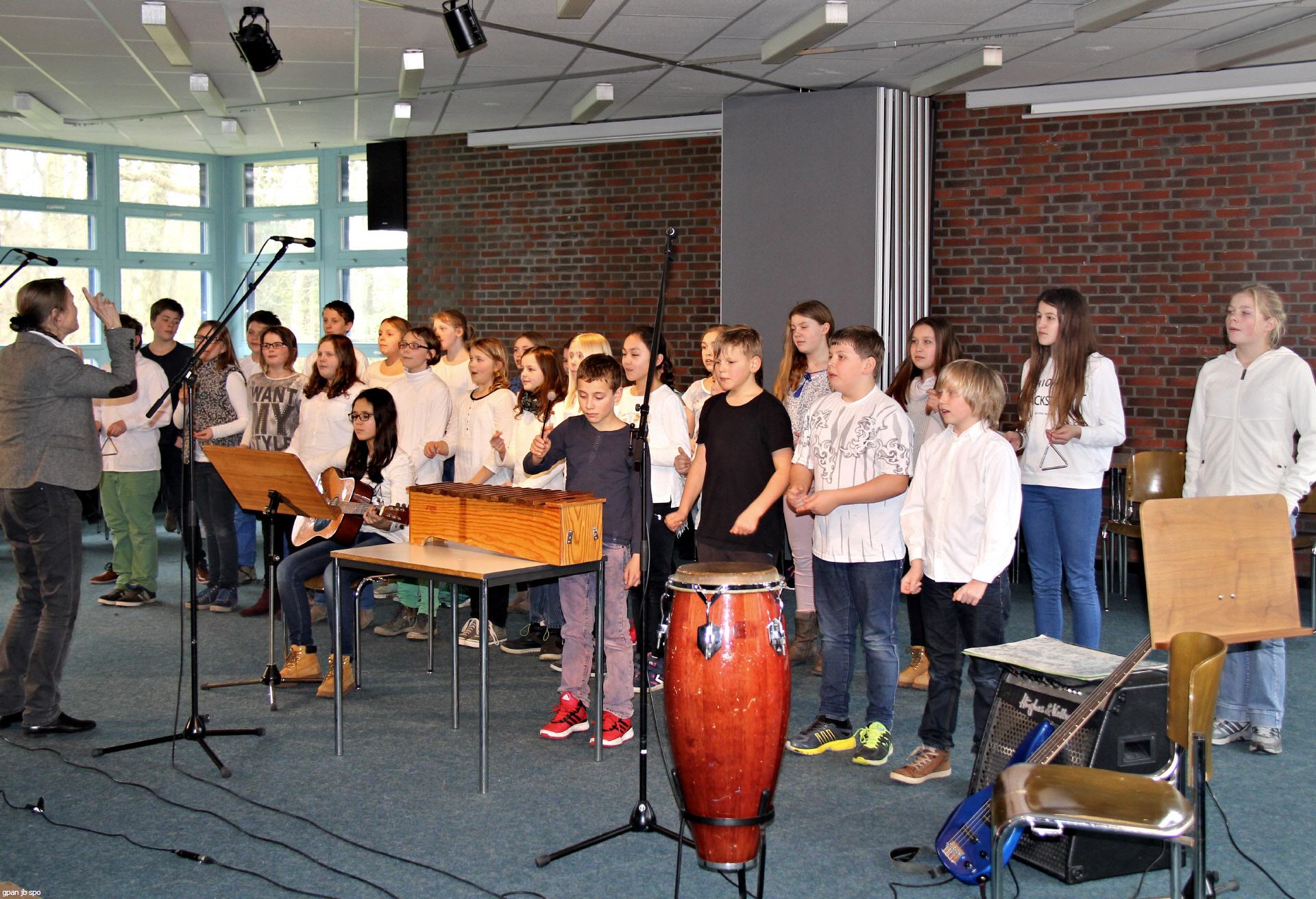 Der Unterstufenchor unter Leitung von Christine Melzer und der Oberstufenchor mit Ingmar Schulze umrahmten die kleine Feierstunde mit vier Liedern mit Gitarre, Klavier- und Trommelbegleitung. Den „Irischen Segensgruß“ gaben die Oberstufenschüler ihrem scheidenden Schulleiter mit auf den Weg. Er gehört seit Jahren zu besonderen Feierstunden der Nordseeschule und berührte Matthias Ramm sichtlich.