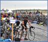 Waren es bei den "Jederfrauen und -männern" über 300 Teilnehmer, so trafen vom Schwimmen über anderthalb Kilometer in der warmen Nordsee zum Radfahren (40 km) hier über 160 Sportler in der Wechselzone ein. Danach begann der 10 km Lauf.