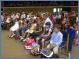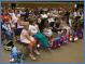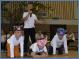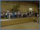 „Wir möchten mal probieren, das ABC euch vorzuführen“; das war natürlich an die Erstklässler gerichtet, die das Spiel interessiert verfolgten. Spannend war es ja auch, was da passierte. Die Lieder, die Tiersprüche, die Buchstaben auf gelben Plakaten mit den Tierbildern und die Einzelvorführungen, z.B. von der Katze, die auf einem Bein tanzt, oder dem Vater, der drei grunzende Schweine hat. Das Ganze mündete in der Feststellung, nicht nur die Tiere,