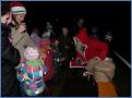 Für sie hatte sich doch auch extra der Weihnachtsmann angemeldet. Der kam wie bestellt um 17:00 Uhr auf seinem Traktor mit Anhänger und seinem Sack mit Süßigkeiten. Die Rute hatte er gar nicht erst mitgebracht, wusste er doch, dass es hier nur artige Kinder gibt. (Daran hatte Hanne Willi auch recht getan!) Zum richtigen Zeitpunkt ließen dann auch die kräftigen Schauern nach. Die Kinder freuten sich über die Bescherung, tobten auf dem Gelände und auch um den Weihnachtsbaum.