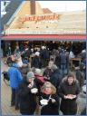 Im Inselgarten, bei Nettuno und Pasquale , im Deichkind und bei Gosch draußen und drinnen ließ man es sich gut gehen. Ein „Lindwurm“ bewegte sich auf der Seebrücke, der sich dann auf der Buhne verteilte. Getränke- und Imbissstände dort hatten schon einige Gäste.