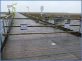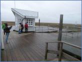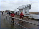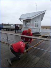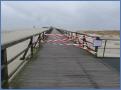 Am Morgen herrschte dann schon richtiger Wind. Die Seebrücke war von ihrer Mitte ab in Richtung Strand schon frühmorgens durch Mitarbeiter der Tourismus-Zentrale abgesperrt worden; im Laufe des Vormittags wurde sie dann beim Brückenhäuschen um 11:00 Uhr geschlossen. Ein paar Neugierige wurden von Nils Stauch von der Brücke zurück gewiesen, Frank Friedrichs und Jan Lorenzen sperrten sie danach ganz ab. Die Strandbauten wurden alle stromlos geschaltet. Die Treppen zu ihnen waren bereits weitestgehend abgebaut.
