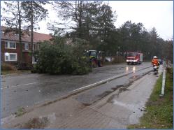 In der Böhler Landstraße Richtung Ecke Zum Karpfenteich war die Feuerwehr dabei, eine umgestürzte Kiefer von der Straße zu räumen. Eine Weiterfahrt in Richtung Dorf war also nicht möglich. So fuhr ich in entgegengesetzter Richtung zum Übergang Böhl. Es regnete hart und stürmte. Ein Blick über den Deich, kein Foto, einfach umkehren und das Auto in die Garage fahren. Warum sollte ich mich zusätzlich in Gefahr bringen? – In Böhl war das Vorland gänzlich überflutet; das Wasser schwappte am Deichfuß.