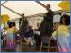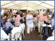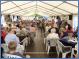 Das Fest hatte um 14:00 Uhr mit Kaffee und Kuchen begonnen. Auch hier waren die Mitarbeiter/innen tüchtig tätig gewesen. In eine Kuchenliste hatten sich alle mit ihren Spendenkuchen eingetragen. Die wurden dann zuhause gebacken und gaben die reichhaltige Kaffeetafel her, an der sich alle laben konnten. Kostenfrei war alles, es sei denn, man hatte besondere alkoholische Wünsche. Dazu war die Bar vom Deichgrafenhof zur Unterstützung an dem einen Kopfende des Zeltes aufgebaut.
