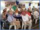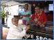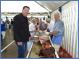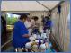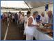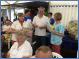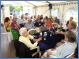 Währenddessen näherte sich der Garprozess für die beiden Spanferkel so allmählich seinem Ende, zubereitet von Carsten Staack und seinem Team aus Tönning, darunter mit fachmännischer Hilfe die „beiden Alten“ Bruno Staack und Hermann Oldehus. Zunächst aber entlud sich noch ein Gewitter. Blitz und Donner waren aushaltbar, doch der Regen brachte etwas mehr Wasser als erwünscht, was der Stimmung keinen Abbruch tat. Es klarte wieder auf. Für diejenigen, die kein Spanferkel wollten, gab es kleine schmackhafte Frikadellen bzw. Leberkäsboller und viele verschiedene Zulagen von Kartoffelecken über Brot und Salaten. Es schmeckte. Mancher, auch von den Heimsenioren, konnte einer zweiten Portion nicht widerstehen.
