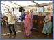Im extra aufgebauten großen Zelt, in dem alle 55 Heimbewohner (alle Pflegestufen) und ihre über 150 Gäste ausreichend Platz fanden, wurden gerade Darbietungen unter dem Motto „Hit-Mix“ gezeigt. Das Mitarbeiterteam hatte sie miteinander ausgewählt und die Bühnenauftritte eingeübt. Selbstverständlich waren Inka und Olaf Robertson darin eingebunden und präsentierten sich ebenfalls kostümiert zur großen Freude aller Anwesenden. Sie imitierten Heinz Rühmann und „brachen die Herzen der stolzesten Frauen“ oder umgarnten als „Marylin Monroe“ Mr. President, das war ‘natürlich’ Olaf Robertson. Mit der Imitation vieler weiterer Popgrößen, darunter Heino, Helene Fischer und die Flippers erheiterten sie so höchst amüsant und gekonnt das Publikum. Chris Robertson, der Junior, der sein Medizinstudium gerade mit dem ersten Staatsexamen abgeschlossen hat, sorgte dabei für die Technik und managte das bestens.