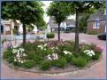 An der großen Ampelanlage beim Marktplatz ein anderer bezaubernder Blütenschmuck in Rosarot und Gelb sowie einzelnen weißen Strauchrosen und hier und da ein Buchsbaum. Und dann im Dorf vor „Cafe Diem“ auf dem Kreisbeet die drei Linden, unter ihnen ein Cosmea-Blütenmeer in Weiß und Pink. Geht man dann die Dorfstraße weiter, kommt man unweigerlich an den gärtnerischen Anziehungspunkt Dorfstraße 19 von Reinhard und Brigitte Ernst, Motivation für jeden Blumenfreund und Hobbyfotografen.