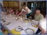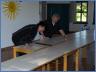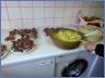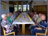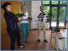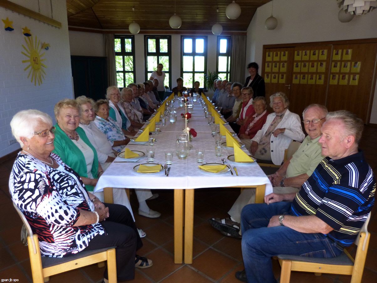 So ab 11:30 Uhr treffen die ersten Gäste ein. Sie haben keine Ahnung , was es geben wird, aber haben sich schon riesig auf diesen Tag gefreut. Denn je nach Wetterlage gibt es dieses 3-Gänge-Menue mit einem „Überraschungseffekt“. Außerdem hat sich noch keine Vorspeise, kein Hauptgesicht, kein Nachtisch wiederholt. Einige der 7 Senioren und 18 Seniorinnen, darunter auch vereinzelt Ehepaare, sind zum ersten Mal dabei. Der Obolus, auf den man sich zur Deckung der Kosten verständigt hat, wird bei Waltraud Rüß entrichtet. Sie hakt auch ab, wer gemäß Anmeldung gekommen ist. Marlies Voß und Renate Maassen sind nun vollauf in der Küche beschäftigt. Um 12:00 Uhr soll schließlich das „Tischlein deck dich“ beginnen können. Was es heute wohl geben wird? Es ist ja ein herrlicher Sommertag.