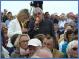 Kanzlerin Dr. Angela Merkel führte die Tradition des Sommerwahlkampfes in touristisch großen Ferienorten ihres "Vorgängers" Dr. Kohl fort. Sie kam pünktlich mit dem Hubschrauber und trug sich in das Goldene Buch der Gemeinde ein. Etwa 2000 Besucher hatten sich auf der Erlebnispromenade (Buhne) eingefunden. Eine kühle Brise aus Nord-West wehte ihr auf dem Podium entgegen. Da sie zwei Tage zuvor Geburtstag hatte, ließ sie es gelassen über sich ergehen, mit einem Geburtstagslied der Zuschauer begrüßt zu werden. Humorvoll begrüßte sie Einheimische und Gäste und nahm dann in einer unaufgeregten Rede die wirtschaftlich positive Bilanz ihrer Regierung zum Anlass, für ihre Wiederwahl und die CDU zu werben.
