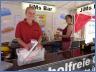 Vergangenes Jahr hatte sich das Langzeitprojekt JiMs Bar St. Peter-Ording des RTSDP zum ersten Mal auf dem Eiderstedter Spezialitätenmarkt präsentiert und von dem Erlös profitiert. Als Dörte Rickerts, die Vorsitzende des Landfrauenvereins Eiderstedt, in diesem Jahr um Beteiligung von JiMs Bar anfragte, war das allein schon deswegen selbstverständlich. Junge Barkeeperinnen waren bereit, und so gab es alkoholfreie Cocktails: Ipanema, Sunflower und Safer Sex on the Beach. Es war Cocktailwetter, und dieses Mal blieb ein kleiner Überschuss! Richtig zu tun hatte das JiMs-Bar-Team mit vier Barkeeperinnen. 105 Cocktails wurden in den etwas mehr als zwei Stunden gemixt und gingen preiswert für 3,00 € über den „Tresen“. „Safer Sex“ war dieses Mal der Renner – fruchtig süß.
