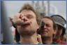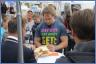 leider vergeblich - 1650 Leute stellten sich in einer langen Schlange auf - es liefen zu viele einfach vorbei - da half auch kein Werben mit der Kamera im Rücken - das Schokoladeneis wurde von den 1650 Freiwilligen verspeist.