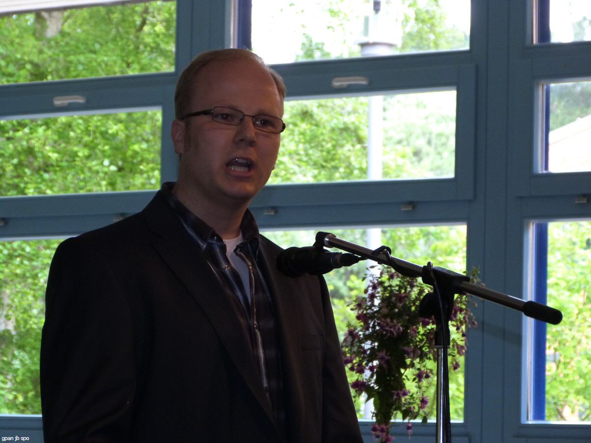 Bürgervorsteher Boy Jöns überbrachte die Grüße von Gemeinde und Schulverband, erinnerte sich an sein Abi vor 30 Jahren an dieser Schule mit ihrem „unverkennbaren Geruch“, machte mit „Geht in die Welt“ Mut für die Zukunft, motivierte aber zugleich auch, die Chancen dieser Region zu nutzen und, mit Blick auf den demographischen Wandel, sich für ein mögliches Leben hier zu entscheiden.