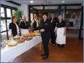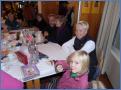 Festlich waren die Tische gedeckt und ein köstliches Tortenbuffet wartete auf die Besucher. Es gab auch reichlich Futjes und außerdem verschiedene Blechkuchen, Stullen mit Käse, Mettwurst und Griebenschmalz, zu Trinken Kaffee und Tee oder alkoholfreie Kaltgetränke. Wer es dann mit Alkohol wollte, konnte es sich bei einem Pharisäer gütlich sein lassen. Die Auswahl aber fiel schwer bei zum Beispiel Preiselbeer-, Eierlikör-, Trümmer-, Apfelwein- oder Kirschmascarponetorte. Doch auch der arabische Honigkuchen war verlockend. Es schmeckte einfach mal wieder alles.