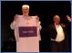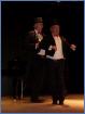 Dreigeteilt war der Abend. Erst präsentierte Eckard Kloth Couplets von Otto Reutter, danach spielte und sang Rainer Zeikau Operettenlieder, beide jeweils distinguiert begleitet von Jan Wilhelm Söth am Piano bzw. Elektroklavier, um die Bühnenshow anschließend als Trio zu beenden. Hier zeigten sich die beiden Sänger in Frack und Zylinder – man erkannte sie kaum wieder, so gekonnt traten sie auf.
