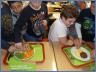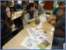 Für die Jüngeren war der Blick auf die Satellitenbilder eine höchst spannende Angelegenheit, konnte man daraus doch alle möglichen Daten entnehmen, dass z.B. die aktuelle Temperatur in Ägypten nur plus 12°C war und über den Gewitterwolken in einer Höhe von 17 bis 18 km minus 77°C herrschten. Fragen hatten sie: „Wie entstehen Polarlichter?“ oder „Gibt es so etwas wie eine Welthülle?“, aber auch „Ich-Botschaften“ gab es:“Ich war schon einmal im Regenwald.“ Themen wie Brandrodung, Erderwärmung und Anstieg des Meeresspiegels durch wärmeres Wasser und schmelzendes Gletschereis Eis erklärte Thomas Rahne für sie verständlich und schaffte so die Voraussetzungen für den Workshop mit den beiden Ökotrophologinnen Selvihan Koc und Mareile Jenß von der Verbraucherzentrale Schleswig-Holstein in Kiel. Über den „ökologischen Fußabdruck“ hinsichtlich der Kohlendioxid-Freisetzung bis hin zu unserem Verbraucherverhalten erfolgte nun mit dem Saisonkalender, Arbeitsblättern und beispielhaften Mittagsgerichten Aufklärung dahingehend, dass Klimaschutz „schmecken“ kann. Klar wurde auch, dass jeder durch einen bewussten Umgang mit Energie – auf dem Fahrrad statt im Auto zur Schule - selber seinen Beitrag dazu leisten kann.