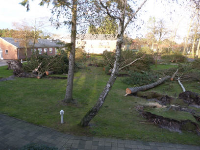 Vormittags war alles noch ganz ruhig, doch bis zum Mittag legte der Wind zu, die Böen wurden heftiger und gegen 14 Uhr hatten die Sturmböen ihre größte Stärke erreicht. Die Feuerwehrfahrzeugsirenen waren durch den Sturm kaum zu hören, doch alle waren im Einsatz. Blätter, Zweige. Äste wurden auf die Straßen geschleudert, Dachziegel lösten sich, Bäume stürzten um und versperrten zeitweise die Straßen.