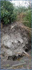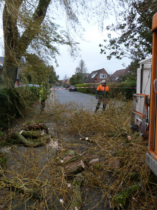 Bilder 15 – 22 Freitagmorgen, 01. Nov., ca 11:00 Uhr im Berliner Weg im Dorf an der Ecke Ostlandstraße: Weide in Schräglage mit Kippgefahr