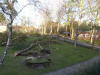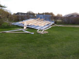 Bilder 12 – 14 Von zehn Hütten des Campus Nordsee zwischen Rezeption und Erlenhaus „Am Karpfenteich“, ehemals Gelände „Haus Gießen“ sind vier Dächer „geflogen“ und in zum Teil über 100 m Entfernung gelandet, ohne weiteren Schaden anzurichten.