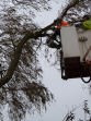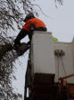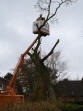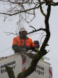 Gemeindearbeiter Herbert Niehus und Sönke Homann nehmen vorsorglich den Baum astweise herunter – Für Sonntag, 03. November, ist ein neuer Sturm mit bis zu 120 km/h angesagt.