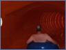 Mit dem Einstieg wird der Rücken befeuchtet. Wegen der Reibungshitze würde sonst die Haut verbrennen. Nach dem Knopfdruck heißt es Arme in Kreuzstellung mit den Händen nach oben über der Brust anlegen. Schon öffnet sich unter den Füßen eine Klappe und die Talfahrt beginnt im 70°-Winkel. Nach nicht einmal einer Sekunde saust man durchs Sichtrohr und rast in einer großen Rechtskurve in den Auslaufkanal und wird durch das dort befindliche Wasser gebremst.