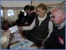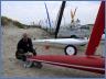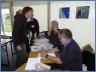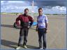 Das Helferteam um Kirsten Anton mit Karl-Heinz und Magdalena Wendisch, Christa Cranz, Friederike Hanke, Nadia Eickstädt und Beate Wachkamp erwartete am Freitagabend bis 19:00 Uhr die letzten Strandseglerpiloten im Zelt zum Abgleich mit den Nennungen zur Einschreibung vor Ort. Als einer der letzten traf Symen Voet, Klasse 3 Pilot aus De Panne in Belgien ein, meldete sich offiziell im Zelt beim Team an und ließ sich von Kirsten Anton die Anweisungen zur Einschreibung geben. Gemeinsam mit Michaela Schulz, Klasse 3 Pilotin aus Hamburg, und Paul Mahrt, mit 76 Jahren ältester teilnehmender Pilot von YCSPO, präsentierte er sein Euro-Shirt für die 49. Europameisterschaft vom 21. bis 27. September in St. Peter-Ording.