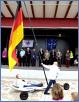 Abschlusshöhepunkt waren die Nationalhymnen für die beteiligten Piloten von Belgien, Dänemark, Groß-Britannien, Frankreich, Griechenland, Irland, Niederlande, Schweiz, USA (Teilnahme wegen offiziellen weltweitenWettbewerbes) und Deutschland sowie der Europahymne zum Schluss. Dazu wurden jeweils an den Segelwagen die Flaggen gehisst. Nun kann es los gehen mit den Rennen auf der Sandbank vor Sankt Peter-Ording. Gestartet wird auf drei Kursen.