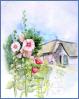 Stockrosen vor einem Haubarg in Tating (Eiderstedt)