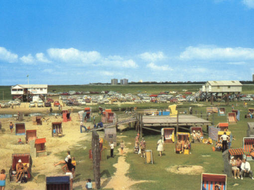 Gebadet wurde direkt vor den Hotels und Pensionen etwa in Höhe des heutigen Deiches. Man lag in den Dünen und bei Flut konnte man in dem Priel baden. Davor lag eine Sandbank, auf die man bei Flut mit dem Boot übersetzten konnte.