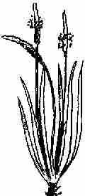 Die Blüten sind klein, zwittrig, in den Achseln von schuppenförmigen Tragblättchen. Zahlreiche grünlich-braune Blüten sind in 4-10cm langen und kaum 5mm dicken Ähren angeordnet. Staubblätter /Staubfäden gelb.