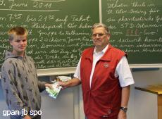 Walter Petersen, Vors. des SPD-Ortsvereins, überreicht 500 Euro an die Förderklassen