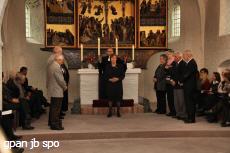 Propst Jürgen Jessen-Thiesen erinnerte an all die unterschiedlichen Aufgaben, die Frau Rüß in der Gemeinde auf sich genommen habe: Lektorendienst, Sorge für den Altarschmuck, Seniorenarbeit, Partnerschaft mit Steinhagen, Hilfe beim Bürodienst, Singen im Kirchenchor, Hilfe in der Kantorei (Konzerte u.a.m.), Mitglied im Kirchenvorstand. Sie sei immer da, wenn man sie brauche.