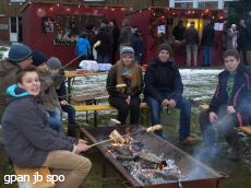 Mitten auf dem Gelände des Jugenderholungsdorfes in der Pestalozzistraße erstrahlte ein wunderschöner großer Weihnachtsbaum im Lichterglanz. Rundherum standen mit Tannengrün und Lichterketten adventlich herausgeputzt die vielen zumeist dunkelroten Holzhütten. Auf der Rasenfläche mit den verbliebenen Schneeresten der vergangenen Wintertage waren um ein Holzfeuer in einer Eisenwanne Bänke aufgestellt. Auf ihnen saßen Kinder und Jugendliche begeistert und fleißig beschäftigt, über der Glut ihr Stockbrot zu backen. Gleichzeitig konnten sie dabei die abstrahlende Wärme an diesem feuchtkalten dritten Adventswochenende genießen.