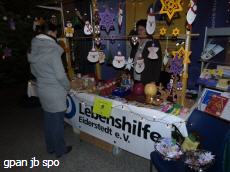 Ebenso lud die Aula zum Besuch ein und zeigte sich festlich geschmückt mit einem Weihnachtsbaum in der Nähe der Kaffeetische und mit Lichtergirlanden an der Empore. Zwei Diagonalreihen von Schneeflocken und Sternen zauberten Adventsstimmung im Zusammenspiel mit den verschiedenen Ständen. Da wurde Wolle gesponnen. Gläser wurden verziert. Mit Brandmalerei wurden persönliche Geschenke geschaffen. Es gab Schaffelle zu kaufen, Wolliges, Gestricktes und Gehäkeltes, was Besonderes zum Anziehen, Schmuck unterschiedlichster Art, Marmeladen und Säfte, Weihnachtskarten, selbst Gebasteltes und vieles mehr, darunter die friesische Weihnachtskugel 2012 mit dem Schafmotiv. Es war ein echter weihnachtlicher Markt bei Beteiligung der St. Christian Diakonie Garding mit ihren verschiedenen Einrichtungen und dem Ortsverein St. Peter-Ording des DRK.