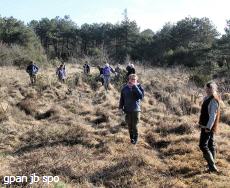 „Ich will etwas Nützliches tun. Hier kann ich die Feuchtwiesen und damit seltene Pflanzenarten erhalten.“ Martha Koelling verbringt ihr BFD (Bundesfreiwilligendienst) – Jahr auf Föhr und ist für dieses Wochenende nach St. Peter-Ording gekommen. „An die Temperaturen gewöhnt man sich!“, sagt sie lachend. Heute scheint die Sonne auf dieses Feuchtdünental. Sina Pünger aus Baden-Württemberg leistet ihr freiwilliges ökologisches Jahr (FÖJ) bei der Schutzstation Wattenmeer in St. Peter-Ording ab. „Hier ist es wunderschön, ich erlebe die Jahreszeiten hautnah, draußen bei den Führungen durch das Watt, durch die Dünen oder bei der Vogelzählung. Alle Jahreszeiten bei jedem Wetter!“ Und ihr gefällt das gemeinsame Arbeiten mit den anderen Jugendlichen. Dass sie genau wissen, warum sie hier die Birken auf etwa ein Meter Höhe absägen, die Kiefern tief absägen oder die Erlen stehen lassen, dafür sorgte auch die Diplom-Biologin Sabine Gettner, Geschäftsführerin des FÖJ-Trägers in Husum. Sie hat diesen Einsatz gemeinsam mit der unteren Naturschutzbehörde Nordfriesland und der Gemeinde St. Peter-Ording organisiert. Die Mitarbeiter des Bauhofes haben schon größere Bäume gefällt und jetzt sind die Jugendlichen dabei, Äste und Zweige über die kleinen Gräben springend aus dem Tal zu ziehen. Bis Ende Februar wollen sie in dem Feuchtdünental fertig sein. Die Maßnahmen sollen dazu beitragen, dass typische Arten dieses seltenen Biotops wieder eine Chance bekommen, sich auszubreiten. Da ist zum Beispiel der „Beinbrech“, der dort wächst, wo man sich ein Bein brechen kann, nämlich dort, wo man von Pflanzenbüschel zu Pflanzenbüschel springen muss, um keine nassen Füße zu bekommen. Der „Beinbrech“ ist die gefährdete Moor-Ährenlilie, in schönen gelben Blütentrauben blühend, die wiederum den Bläuling, einen Schmetterling, anzieht. An feuchten Stellen blüht auch die Glockenheide (Erica tetralix). Landesweit vom Aussterben bedroht ist der blau blühenden Lungenenzian. Sabine Gettner hofft, dass sich auch der Mittlere Sonnentau wieder ansiedeln könnte, der hier Ende der 90er Jahre noch wuchs, aber inzwischen verschwunden ist.