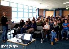 Diplom-Biologe Dr. Walther Petersen-Andresen, Mitglied der Bürgerinitiative gegen CO2-Endlager und hauptberuflich Leiter der Integrierten Station Eider-Treene-Sorge und Westküste (ETSW) in Schlüttsiel (Außenstelle des Landesamtes für Landwirtschaft, Umwelt und ländliche Räume), war in der Nordseeschule St. Peter-Ording zu Gast. Er war gebeten worden, über CCS und Fracking zu informieren. Für diese erstmalig durchgeführte Vortragsveranstaltung im Rahmen des Chemieunterrichtes waren die 9. Klassen des Gymnasialteils und die 10. Klassen des Regionalschulteils mit ihren Fachlehrkräften Dr. Jürgen Neumann, Stephan Lukau und Robert Sonntag gemeinsam in der Aula versammelt. Kohlenstoffdioxid und Energiefragen sind Themen des Unterrichts in diesen Jahrgangsstufen.