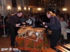 Nun war das von Anfang an begeisterte Publikum richtig eingestimmt auf diese Art Musik. Es folgte mit den „Bildern einer Ausstellung“ (1874) von Modest Mussorgski (1839-1881) ein den meisten durch die 1922 erfolgte Orchestrierung von Maurice Ravel (1875-1937) wohl sehr bekanntes Stück. Matthias Krohn hatte 1997 die Idee, diesen Klavierzyklus für zwei Marimbas zu bearbeiten und trat damit an Andreas Schwarz heran. In den 1980er Jahren hatten sie sich im Studium an der Lübecker Musikhochschule kennen gelernt. Beide pflegten sie dort jeder für sich ihre intensive Beziehung zur Marimba. Damals galt das Spielen dieses Instrumentes selbst unter klassischen Schlagzeugern als „exotisch“. Das Nationalinstrument von Guatemala stammt ursprünglich aus Afrika.