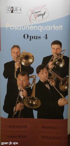OPUS 4 wurde 1994 gegründet. Von den Gründungsmitgliedern sind noch dabei Jörg Richter (Sopranposaune – Fa. Syhre, Leipzig; Alt- und Tenorposaune – Fa. Ed. Kruspe), Leiter des Quartetts, Moderator bei Konzerten und auch sonst „Mann für alles“, sowie Dirk Lehmann (Tenorposaune – Fa. Ed. Kruspe). Stephan Meiner (ebenfalls Tenorposaune – Fa. Ed. Kruspe) und Hans-Martin Schlegel (Bassposaune – Fa. Ed. Kruspe) - in Vertretung für das vierte Ensemblemitglied Wolfram Kuhnt - vervollständigten das Quartett beim Auftritt in St. Peter-Ording.