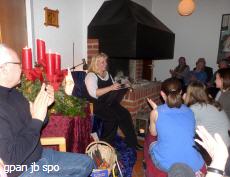 Zum 20. Mal gab es nun „Gedichte und Geschichten“ um Weihnachten mit seinen Vorbereitungen auf das Fest, Essen und Geschenken und Erinnerungen an alte Zeiten. Theologische Anmerkungen und Botschaften fehlten ebenfalls nicht, aber sie waren so fein wie die schönsten Weihnachtsgeschenke verpackt. Dazu gab es nach dem ersten Abschnitt Teepunsch und Glühwein (ohne Alkohol) und nach dem zweiten Teil dann Bratäpfel, frisch zubereitet im Backofen in der Küche nebenan. Der Duft von Weihnachten zog in die Nasen und machte die Herzen weit und fröhlich.