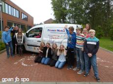Das FranceMobil ist ein kleines französisches Kulturinstitut auf Rädern. Auf seiner Tour 2014/15 machte es jetzt auch Halt an der Nordseeschule St. Peter-Ording. Für alle Lernmöglichkeiten und Informationszwecke hatte Lektorin Delphine Malosse aus Montpellier Material in ihrem Renault Kangoo dabei. Sie ist von den insgesamt 10 Standorten in Deutschland von Hamburg aus für ein Jahr je vier Tage pro Woche an Schulen unterwegs. Gestern in Handewitt, heute hier und morgen in Hamburg macht die Lektorin mit dem Master Diplom II für Französisch als Fremdsprache Lust auf ihre Muttersprache. Französisch-Lehrerin Lena Grützmacher hatte das FranceMobil für vier Lerngruppen aus den 8. und 9. Klassen angeworben.